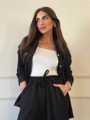 CRUSHED FABRIC BLACK CO ORD SET